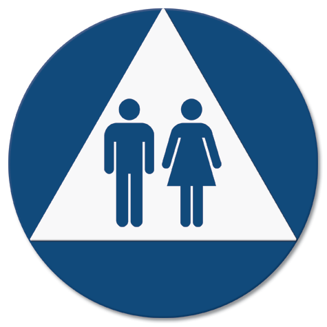 • Designates a unisex restroom by California State Law.